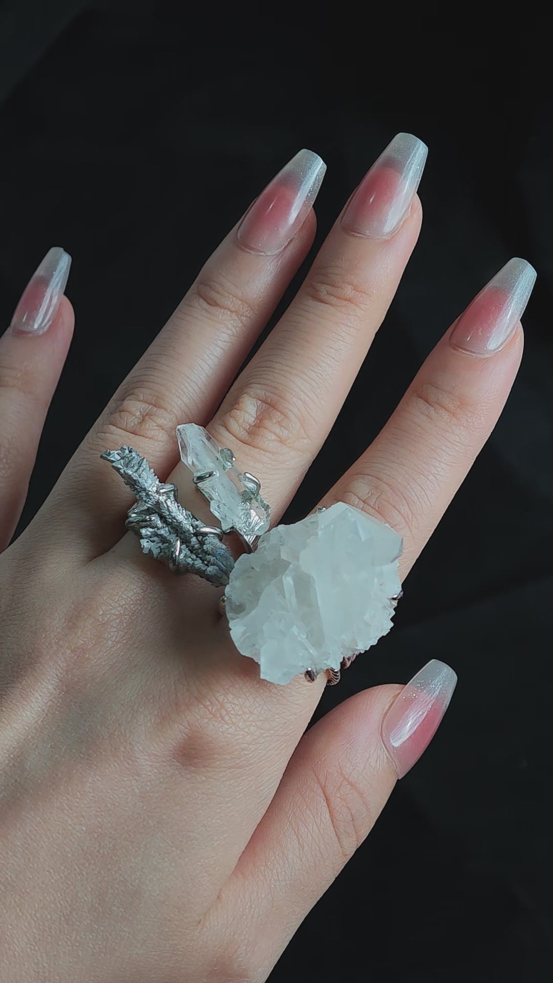 Barite&Cerussite Adjustable Ring - Natural Mineral - Solo Collection -026